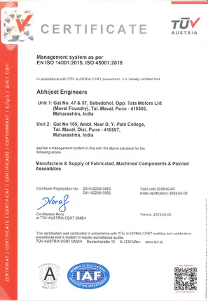 Abhijeet Engineers has a strong focus on total quality management and has implemented several process and controls to ensure the highest level of adherence to quality standards